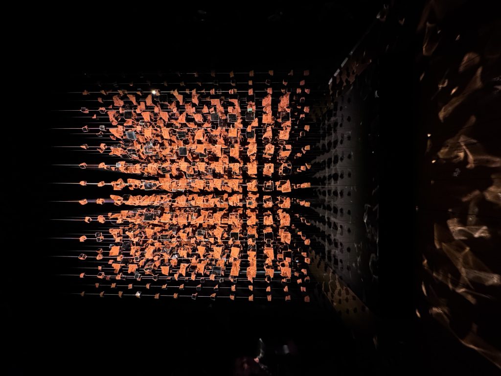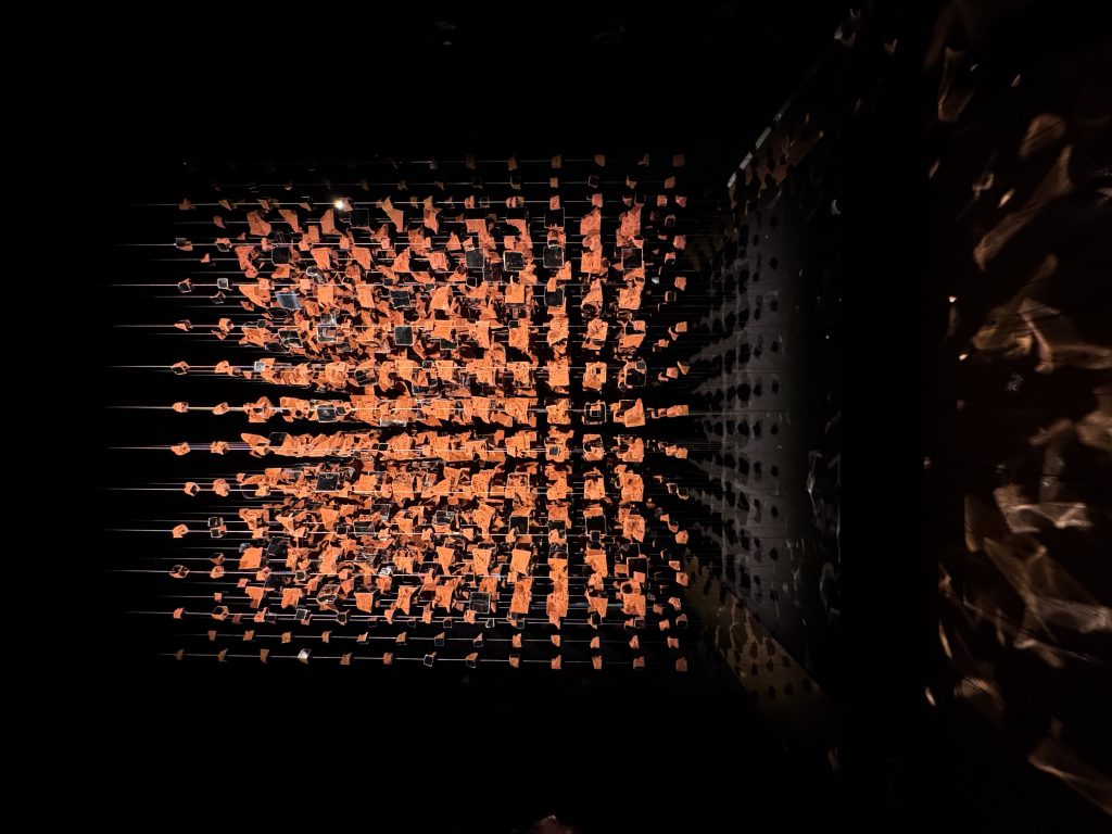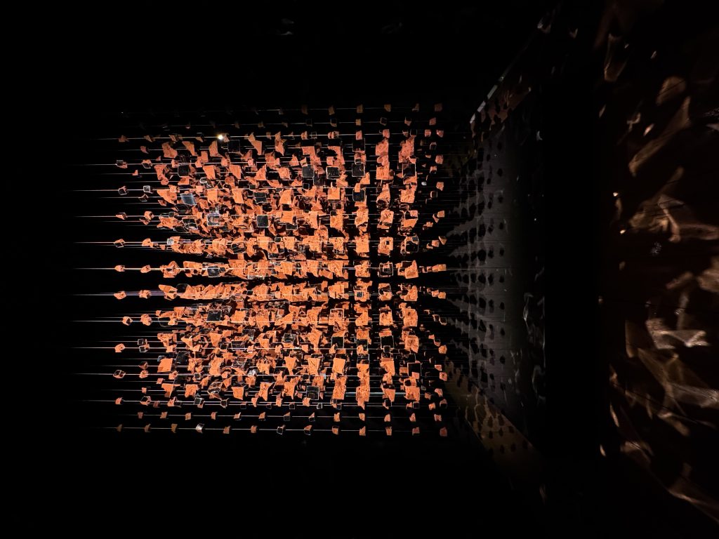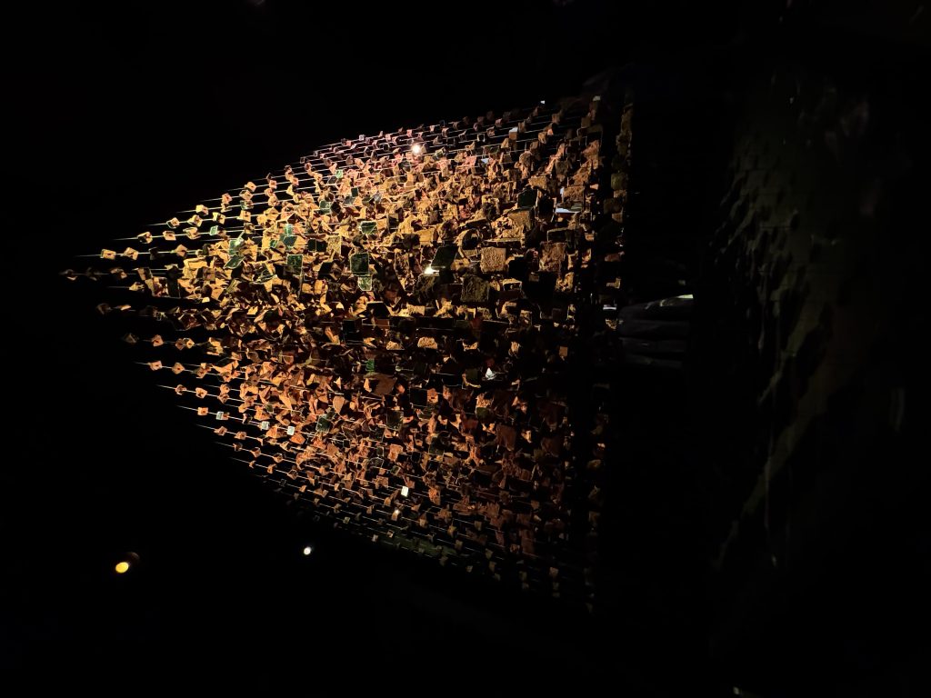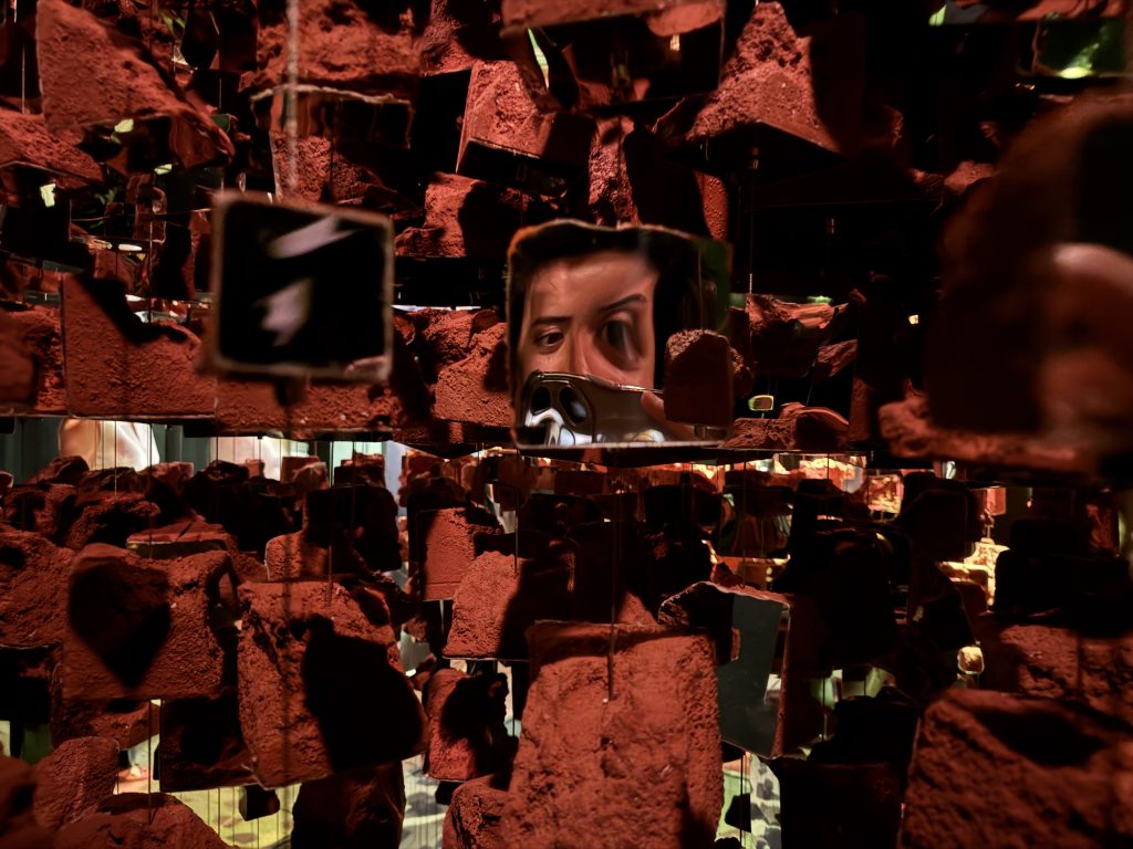 Melek Zeynep Bulut’s A Room of Resonance combined suspended clay fragments, mirrors, and strategic lighting to create a multi-sensory environment where perception became fluid. Visitors moved through a space that refracted their own reflections into fractured yet harmonious compositions, mirroring the tension between individuality and collective identity. The clay elements—rooted in earth and tradition—contrasted with the sleek surfaces of the mirrors, suggesting a dialogue between the organic and the artificial. Light shifted gently across the installation, casting ephemeral patterns that appeared and disappeared with movement, underscoring the impermanence of perception.