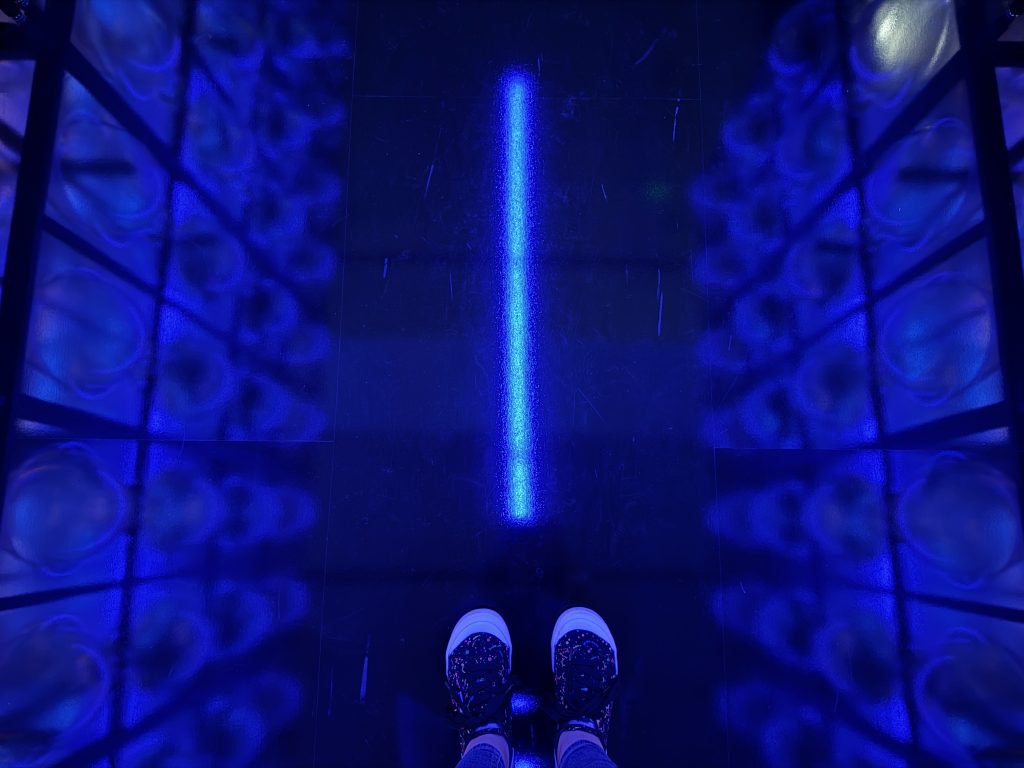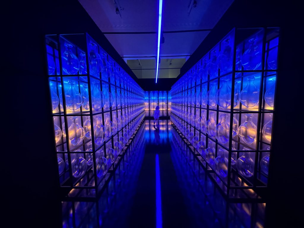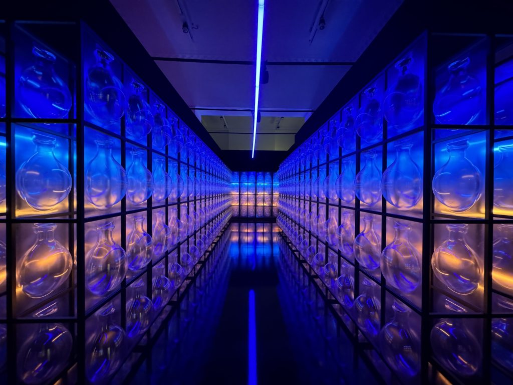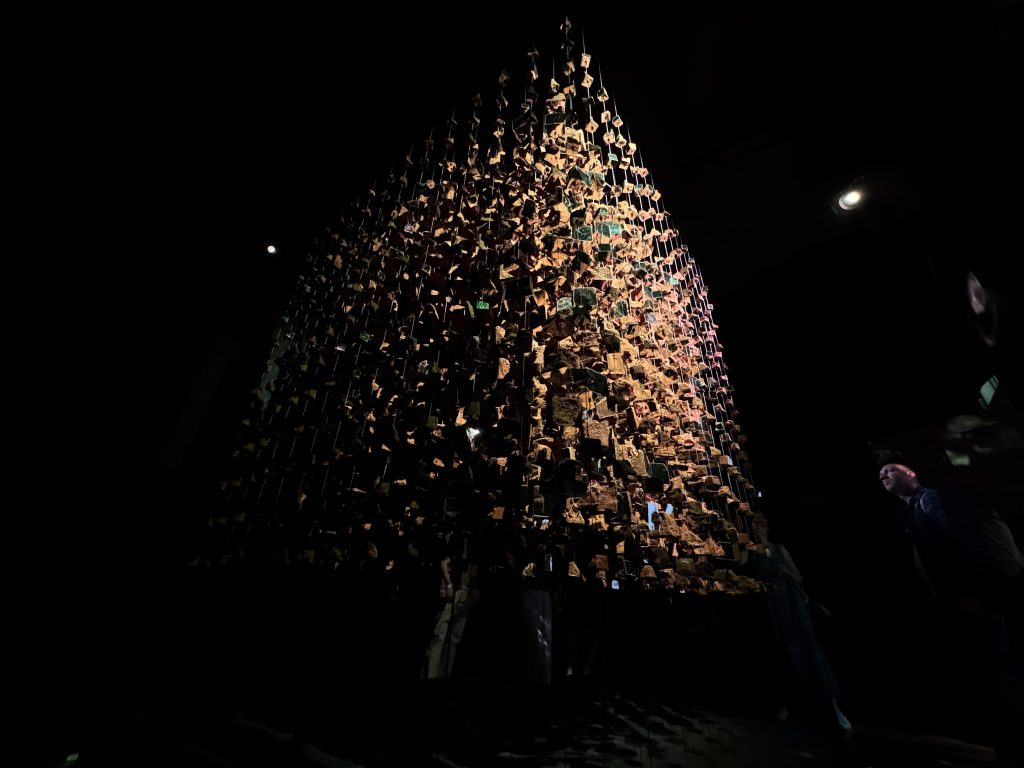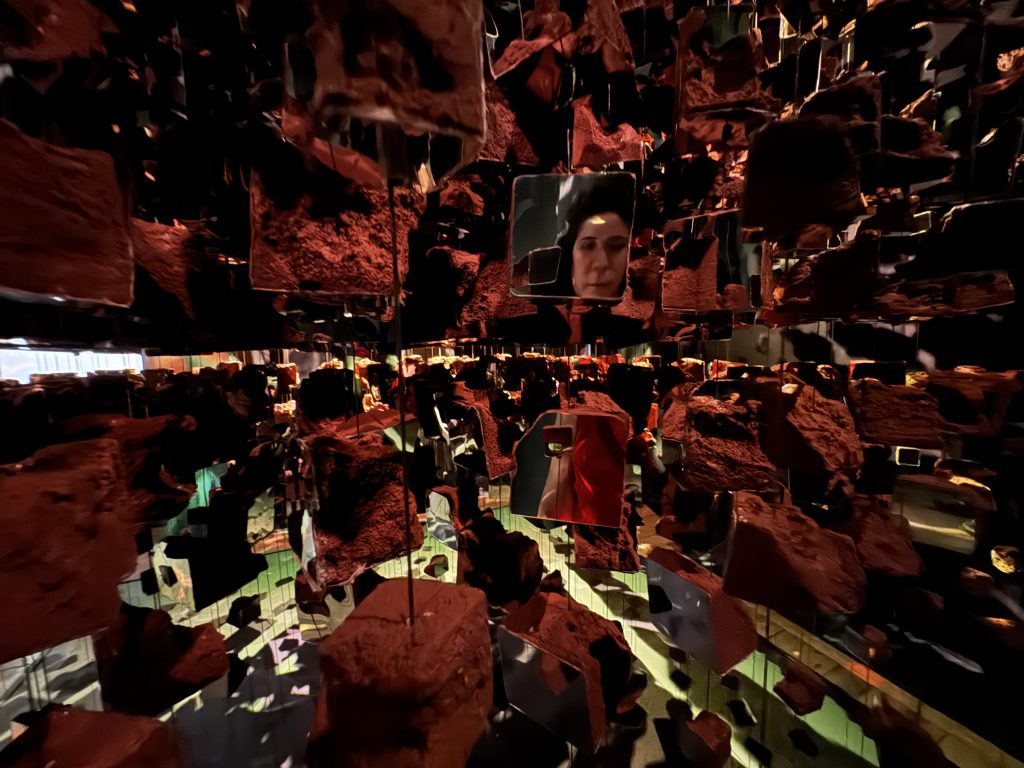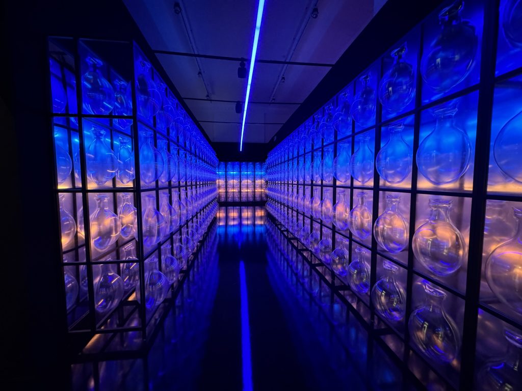 Melek Zeynep Bulut’s A Room of Resonance combined suspended clay fragments, mirrors, and strategic lighting to create a multi-sensory environment where perception became fluid. Visitors moved through a space that refracted their own reflections into fractured yet harmonious compositions, mirroring the tension between individuality and collective identity. The clay elements—rooted in earth and tradition—contrasted with the sleek surfaces of the mirrors, suggesting a dialogue between the organic and the artificial. Light shifted gently across the installation, casting ephemeral patterns that appeared and disappeared with movement, underscoring the impermanence of perception.